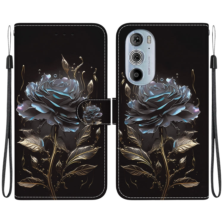 Estuche de Cuero para Motorola Edge + (2022) con Dibujo Coloreado y Textura de Cristal (Rosa Negra)
