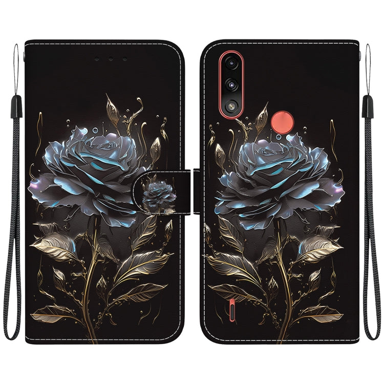 Funda para Motorola Moto E7 Power / E7I Power de Cuero con Dibujo y Textura de Cristal (Rosa Negra)