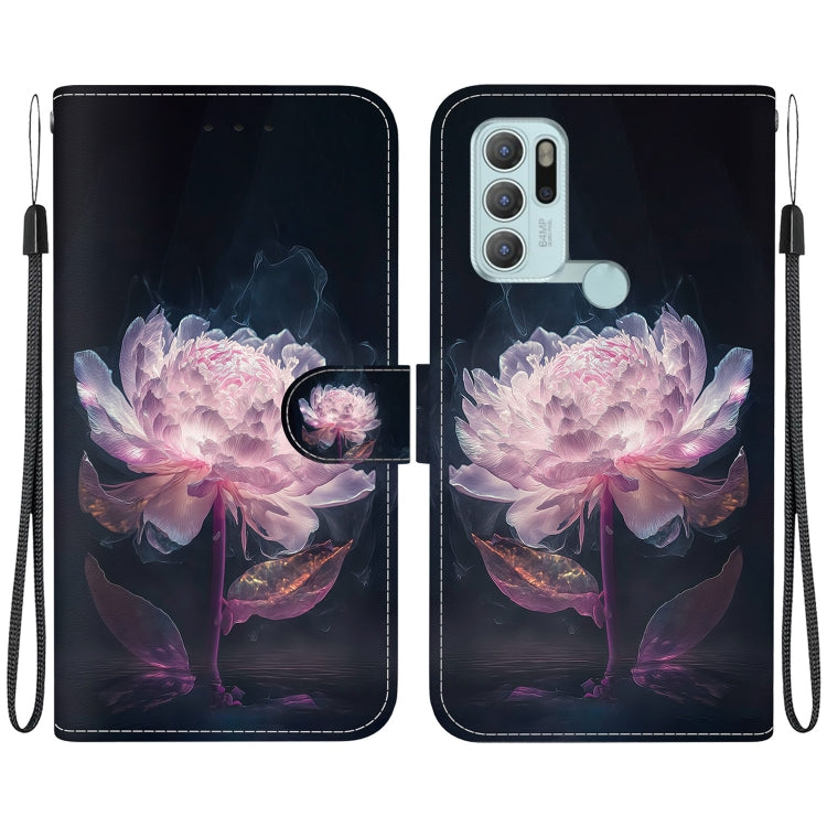 Funda de Cuero para Motorola Moto G60S con Dibujo Coloreado y Textura de Cristal (Peonía Púrpura)