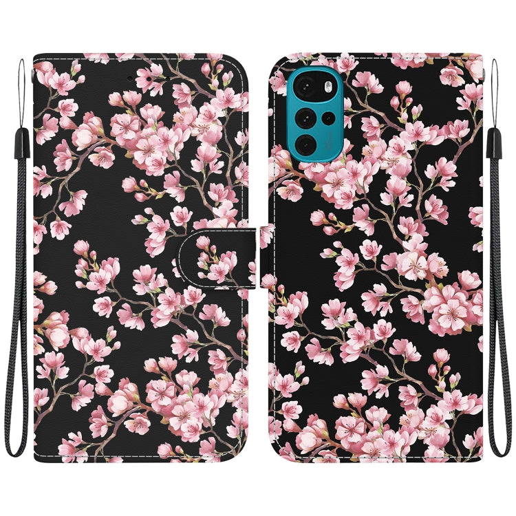 Funda de Cuero para Motorola Moto G22 con Dibujo Coloreado y Textura de Cristal (Flor de Ciruelo)