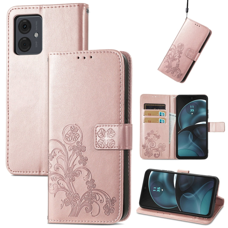 Funda de Teléfono Motorola Moto G14 Cuero Repujado con Cierre de Cuatro Hojas (Oro Rosa)