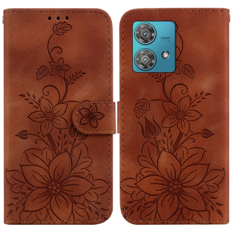 Funda de Cuero en Relieve para Motorola Edge 40 Neo Lily (Marrón)