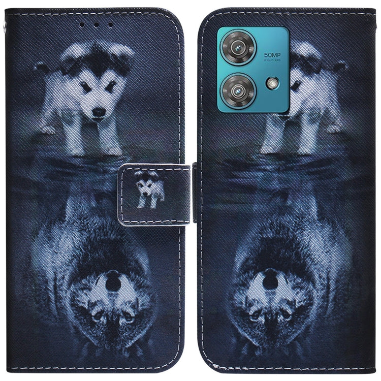 Funda de Cuero con Tapa para Motorola Edge 40 Neo con Dibujo Coloreado (Lobo y Perro)