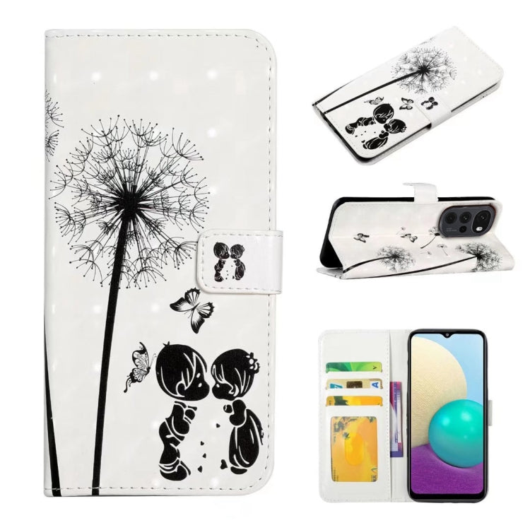 Funda de Cuero para Motorola Moto E32 con Dibujo 3D en Relieve al Óleo (Pareja de Diente de León)