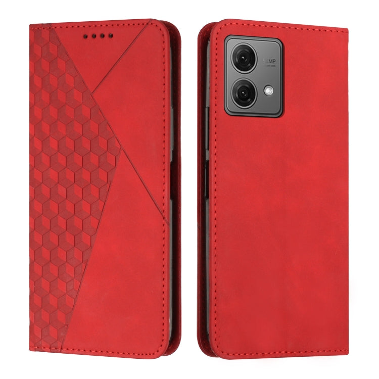Funda de Cuero Magnética para Motorola Moto G84 Diamond Splicing Skin Feel (Rojo)