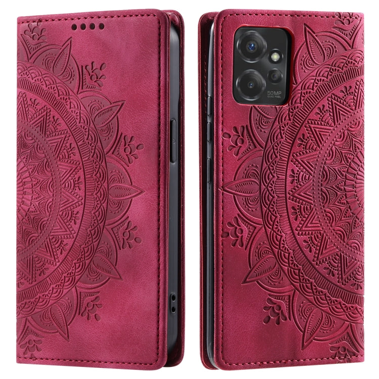 Estuche para Motorola Moto G Power 5G 2023 de Cuero Magnético con Relieve de Tótem (Rojo)