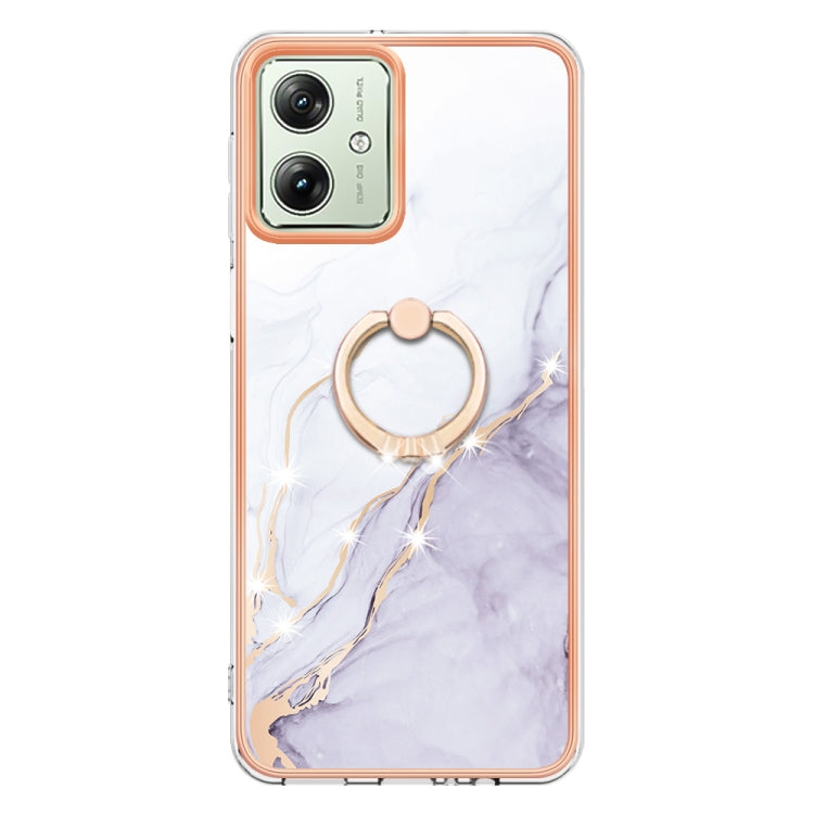 Funda TPU Galvanoplastia Mármol con Soporte para Anillo para Motorola Moto G14 (Blanco)