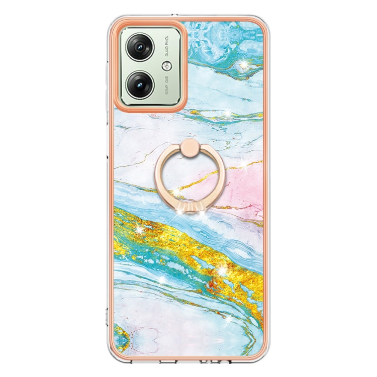 Funda para Motorola Moto G14 Galvanoplastia Mármol Imd TPU con Soporte para Anillo (Verde)