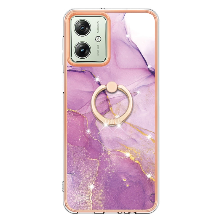 Funda para Motorola Moto G54 Imd TPU Mármol Galvanizado con Soporte para Anillo (Púrpura)
