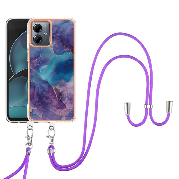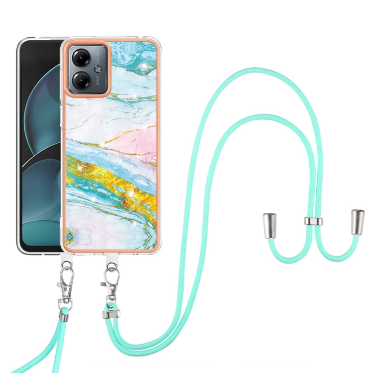 Estuche para Motorola Moto G14 TPU Imd con Galvanoplastia y Cordón (Mármol Azul)
