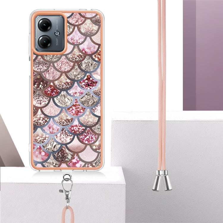 Estuche para Motorola Moto G14 TPU IMD con Galvanoplastia y Cordón (Escamas Rosadas)