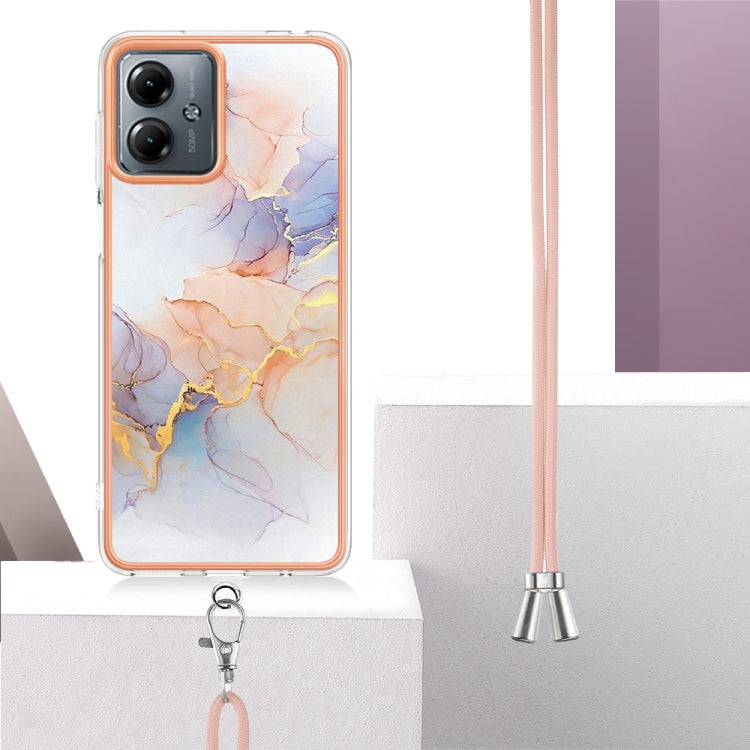 Estuche para Motorola Moto G14 TPU Imd con Galvanoplastia y Cordón (Mármol Blanco)