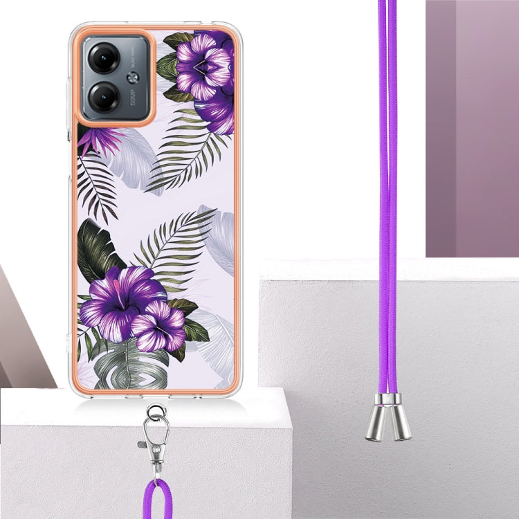 Estuche para Motorola Moto G14 TPU Imd con Galvanoplastia y Cordón (Flor Púrpura)