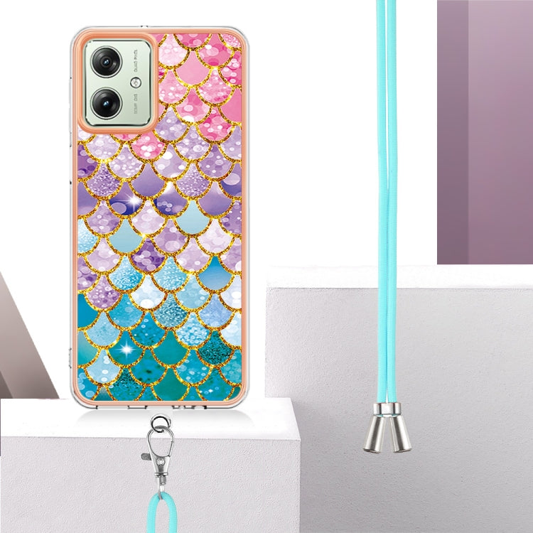 Estuche para Motorola Moto G54 TPU Imd con Galvanoplastia y Cordón (Escamas de Colores)