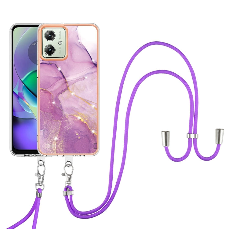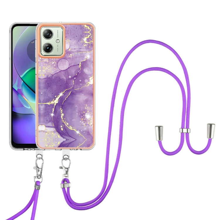 Estuche para Motorola Moto G14 IMD Doble Cara Mármol Galvanizado con Cordón (Púrpura)