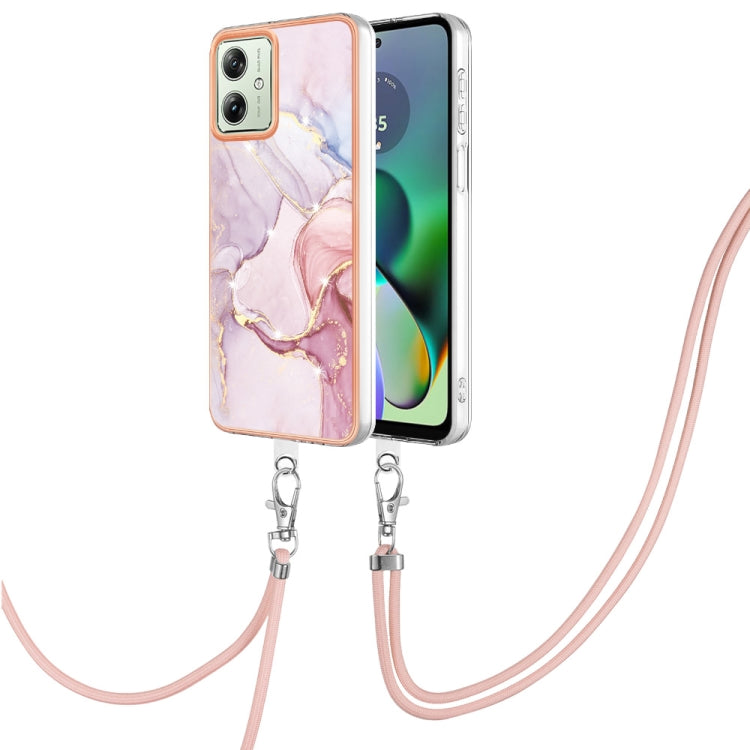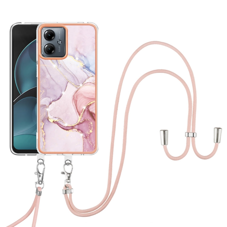 Estuche para Motorola Moto G14 Imd Doble Cara Mármol Galvanizado con Cordón (Oro Rosa)