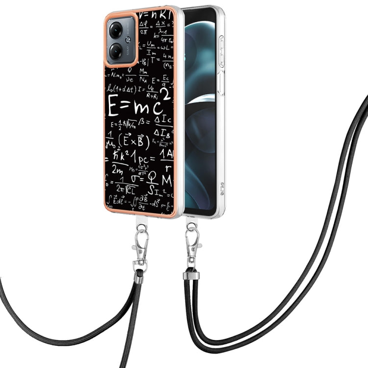 Estuche para Teléfono Motorola Moto G14 IMD Doble Cara con Galvanoplastia y Cordón (Ecuación)