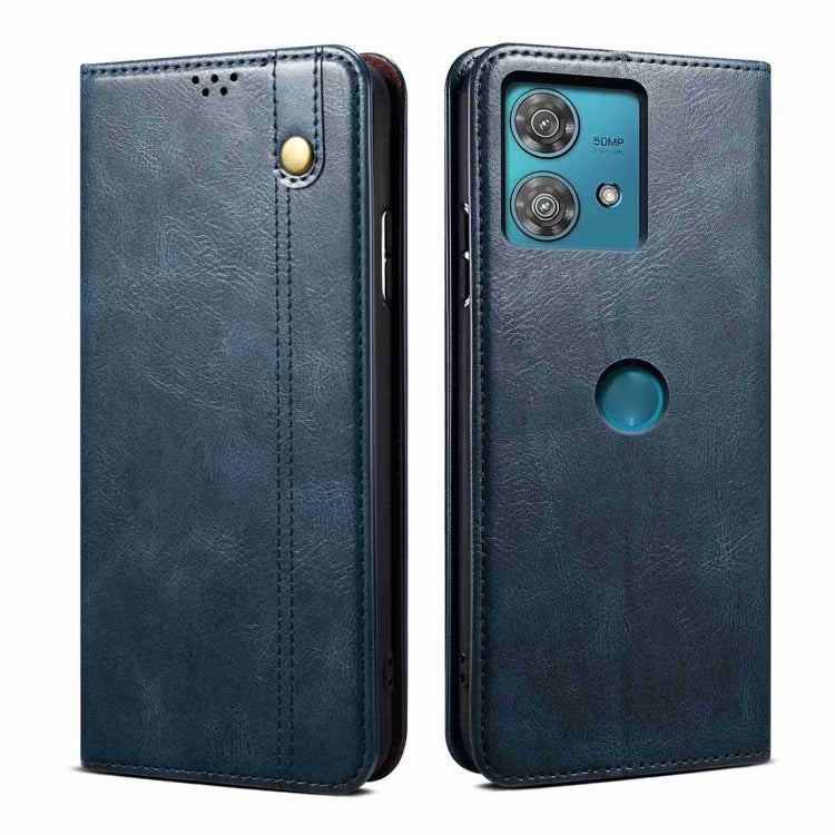 Funda de Cuero Oil Wax Crazy Horse para Motorola Edge 40 Neo (Azul)