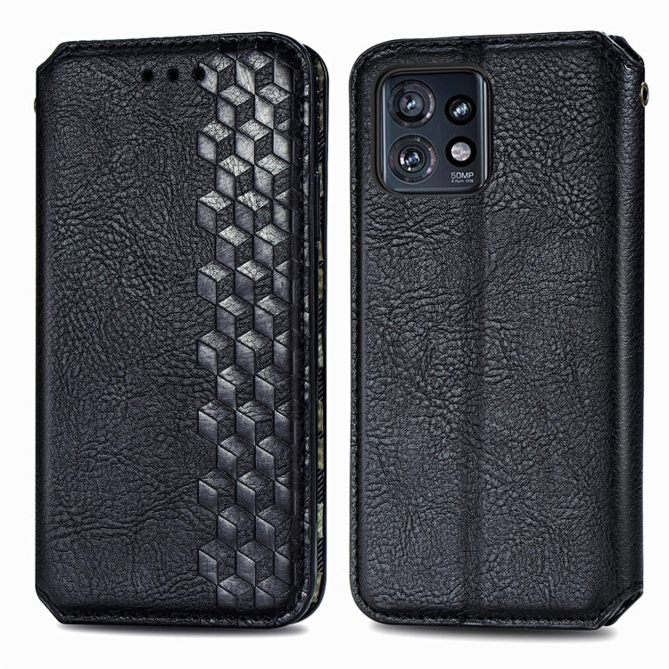 Funda de Teléfono Cubic Grid para Motorola Edge 40 Pro Cuero Magnético Prensado (Negro)
