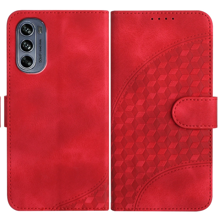 Funda de Cuero para Motorola Moto G62 5G Yx0060 con Relieve y Cabeza de Elefante con Cordón (Rojo)