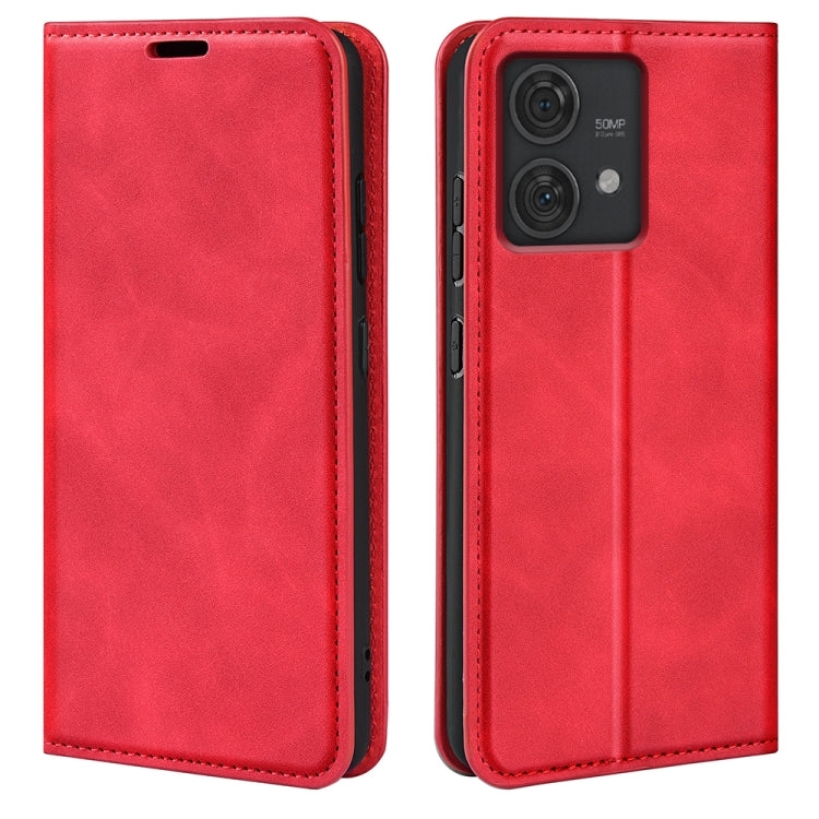 Funda para Motorola Edge 40 Neo de Cuero con Tapa Horizontal y Hebilla Magnética Doble Lado (Rojo)