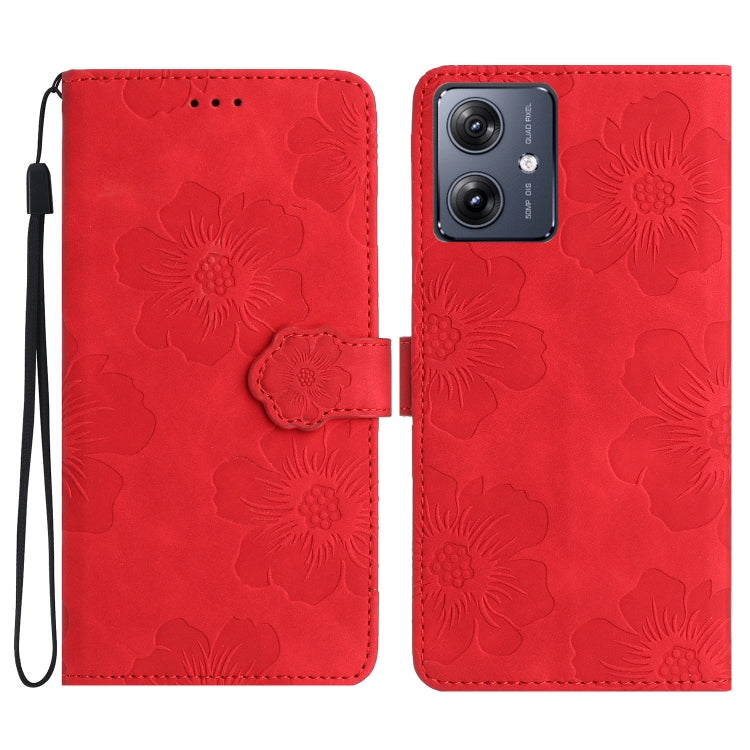 Funda de Cuero para Motorola Moto G54 5G con Estampado de Flores (Rojo)