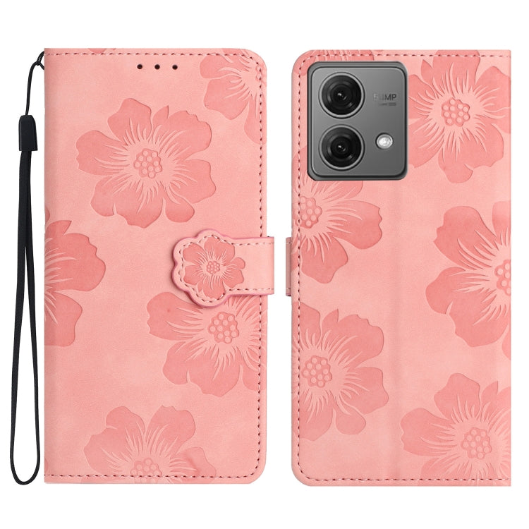 Funda de Cuero para Motorola Moto G84 5G con Estampado de Flores (Rosa)
