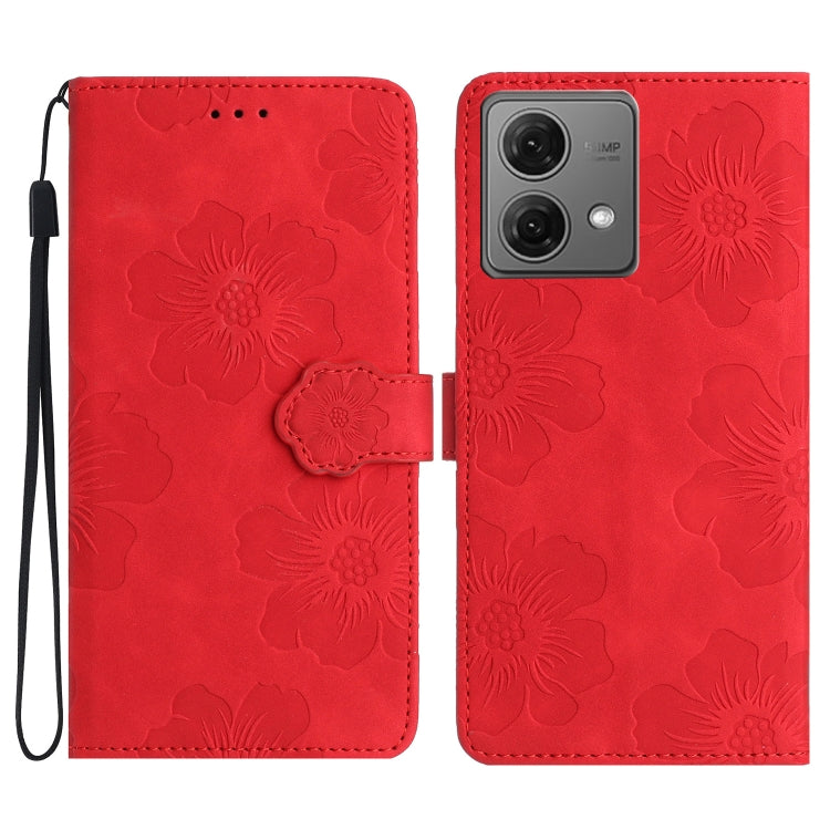Funda de Cuero para Motorola Moto G84 5G con Estampado de Flores (Rojo)