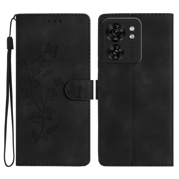 Funda de Cuero para Motorola Edge 40 con Estampado de Mariposa y Flores (Negro)