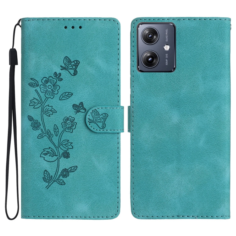 Funda de Cuero para Motorola Moto G54 5G con Estampado de Mariposa y Flor (Azul Cielo)