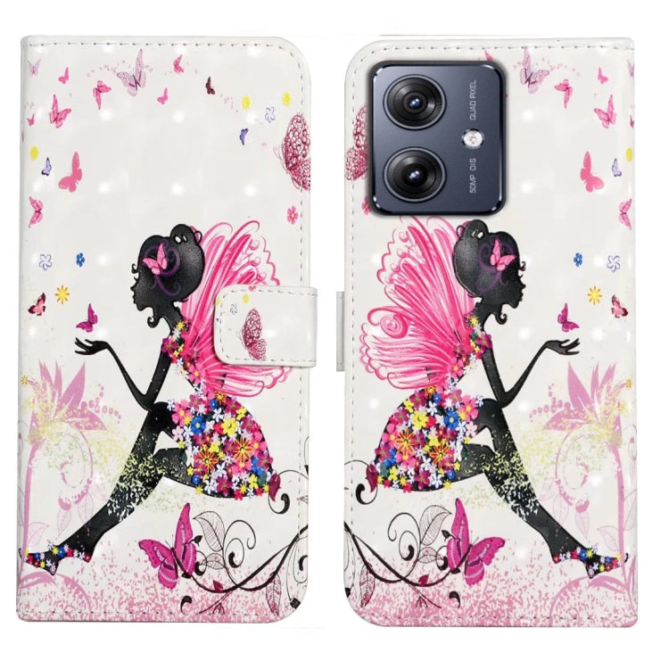 Funda de Cuero para Motorola Moto G54 5G con Dibujo 3D en Relieve al Óleo (Hada de Flores)