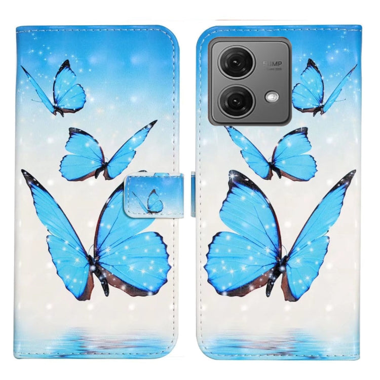 Funda de Cuero para Motorola Moto G84 5G con Dibujo 3D en Relieve al Óleo (3 Mariposas)