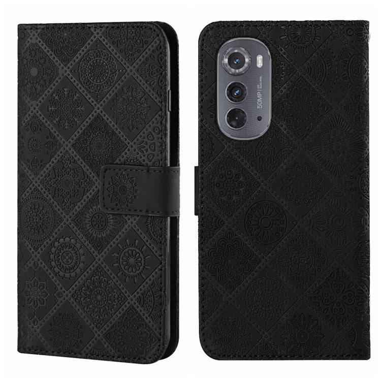 Funda de Cuero para Motorola Edge 2022 con Patrón en Relieve de Estilo Étnico (Negro)