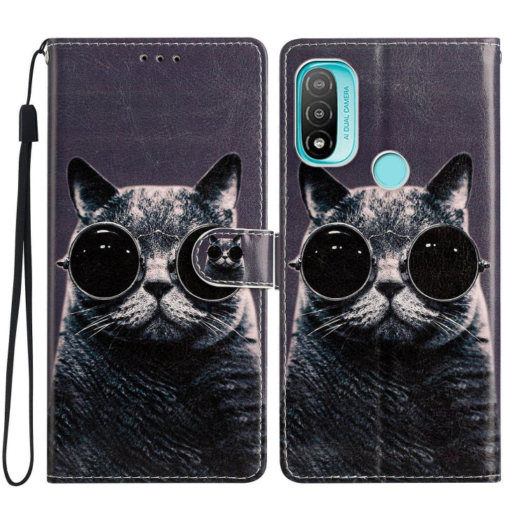 Estuche de Cuero para Motorola Moto E20/E30/E40 con Dibujo Coloreado Gafas de Sol Cat