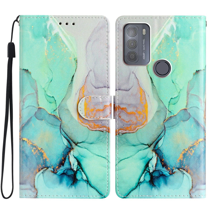 Estuche para Teléfono Motorola Moto G50 de Cuero con Dibujo Coloreado (Mármol Verde)