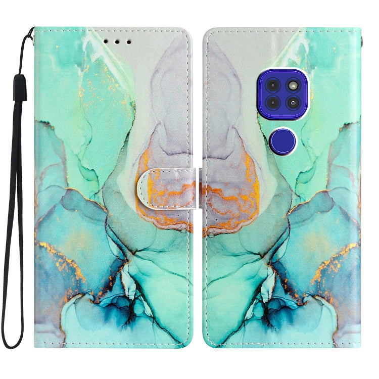 Estuche de Cuero para Motorola Moto G9 y G9 Play con Dibujo Coloreado (Mármol Verde)