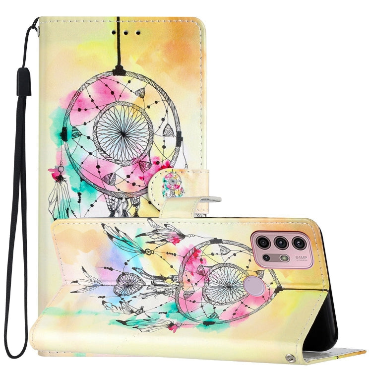 Estuche de Cuero para Motorola Moto G20 con Dibujo Coloreado Atrapasueños