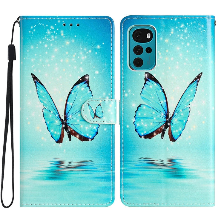 Estuche de Cuero para Motorola Moto G22 con Dibujo Coloreado Mariposa Azul