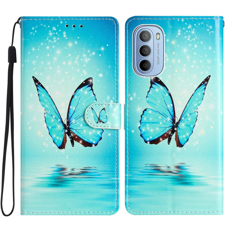 Estuche para Motorola Moto G31 / G41 de Cuero con Dibujo Coloreado Mariposa Azul