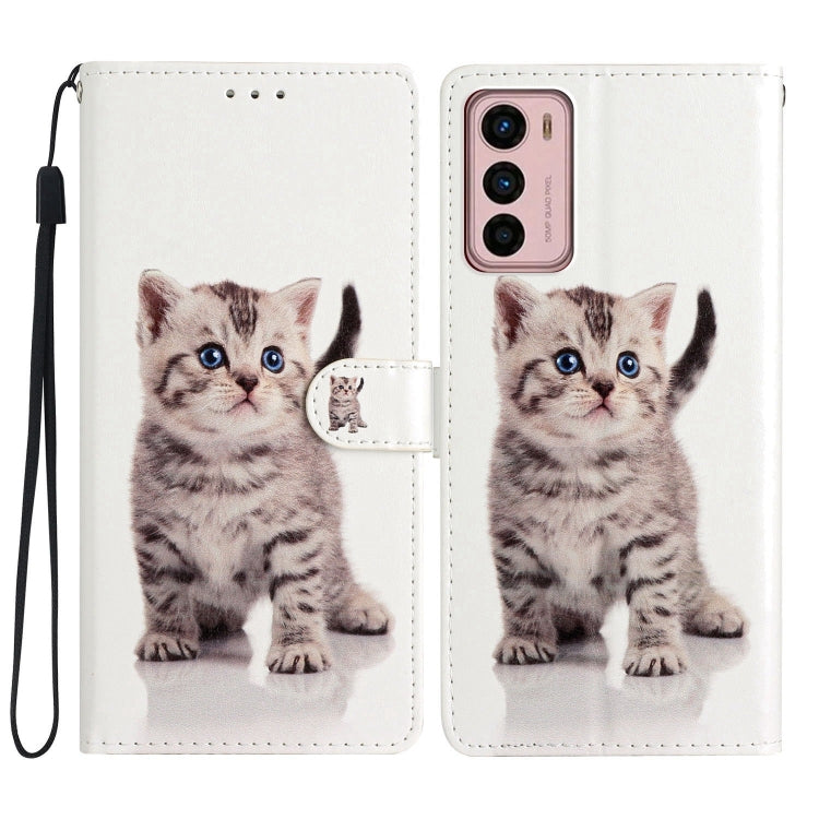 Estuche de Cuero para Motorola Moto G42 con Dibujo Pequeño Gato Atigrado
