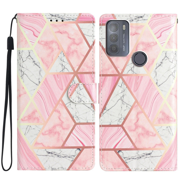 Estuche para Motorola Moto G50 de Cuero con Dibujo Coloreado (Mármol Rosa)