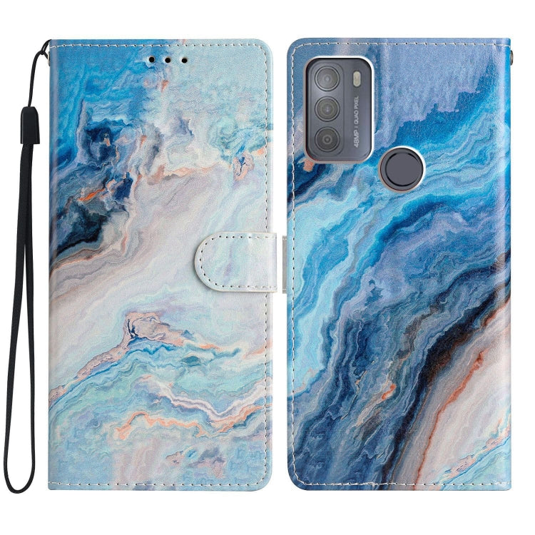 Estuche para Motorola Moto G50 de Cuero con Dibujo Coloreado (Mármol Azul)
