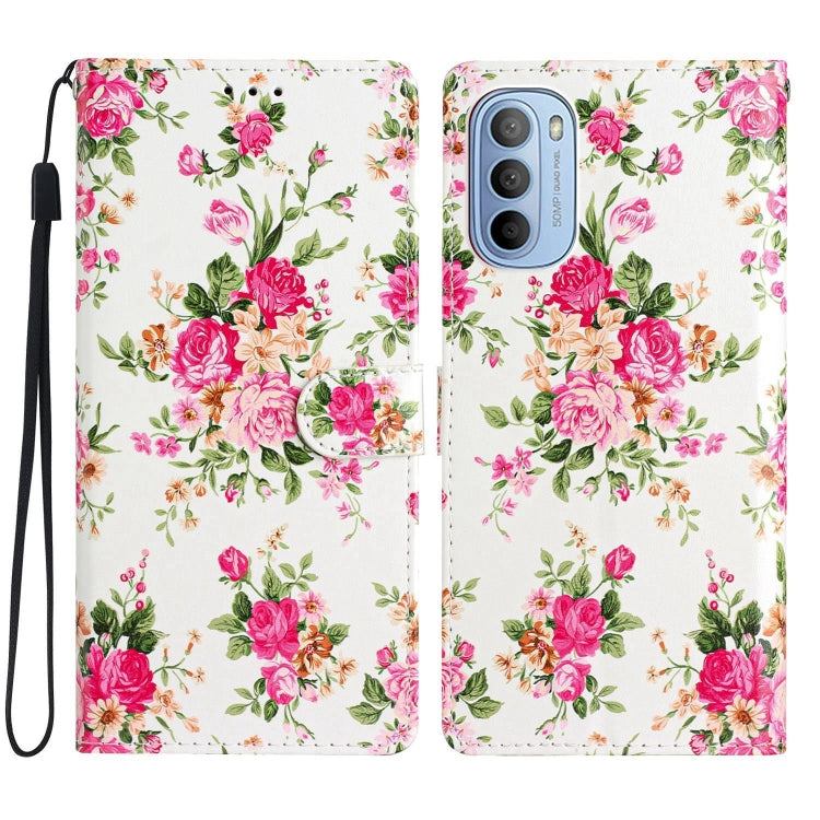 Estuche de Teléfono Motorola Moto G62 de Cuero con Dibujo Coloreado (Peonías)