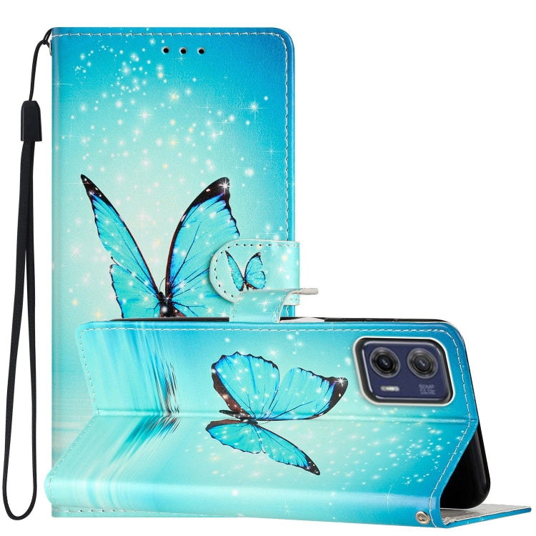 Estuche de Teléfono de Cuero para Motorola Moto G73 con Dibujo Coloreado (Mariposa Azul)