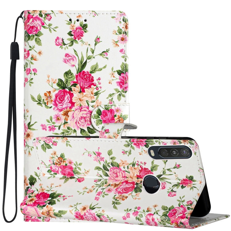 Funda de Cuero para Motorola Moto One Action con Dibujo Coloreado Peonías