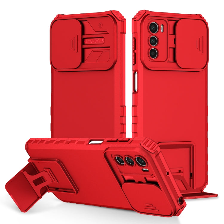 Funda para Motorola Moto G42 con Soporte Estereoscópico Deslizante y Camshield (Rojo)