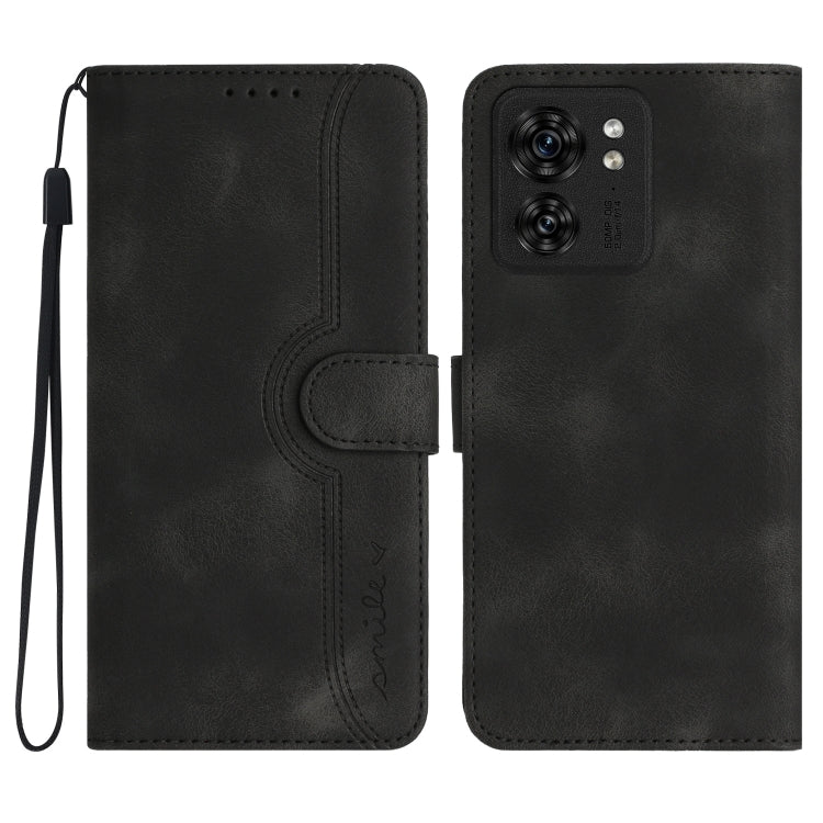 Funda de Cuero para Motorola Edge 40 con Sensación de Piel y Patrón de Corazón (Negro)