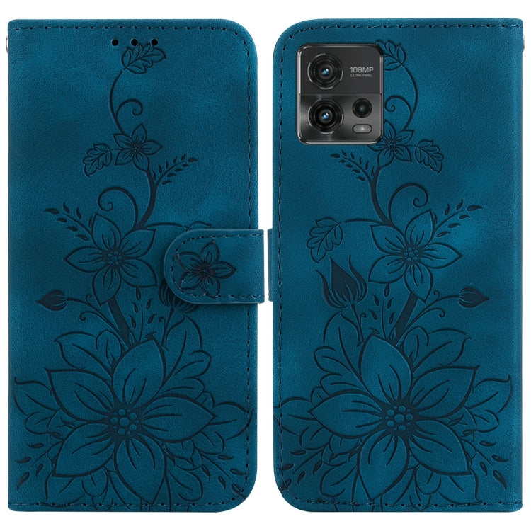 Funda de Cuero con Relieve Lily para Motorola Moto G72 (Azul Oscuro)