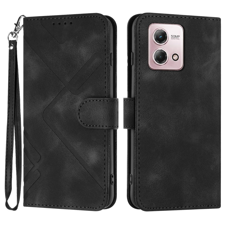 Funda de Cuero para Motorola Moto G Stylus 5G 2023 con Patrón de Líneas y Sensación de Piel (Negro)
