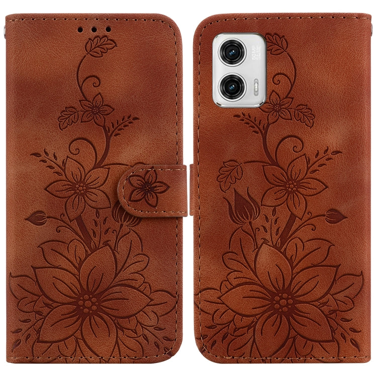Funda para Motorola Moto G13 G23 G53 de Cuero con Relieve Lily (Marrón)